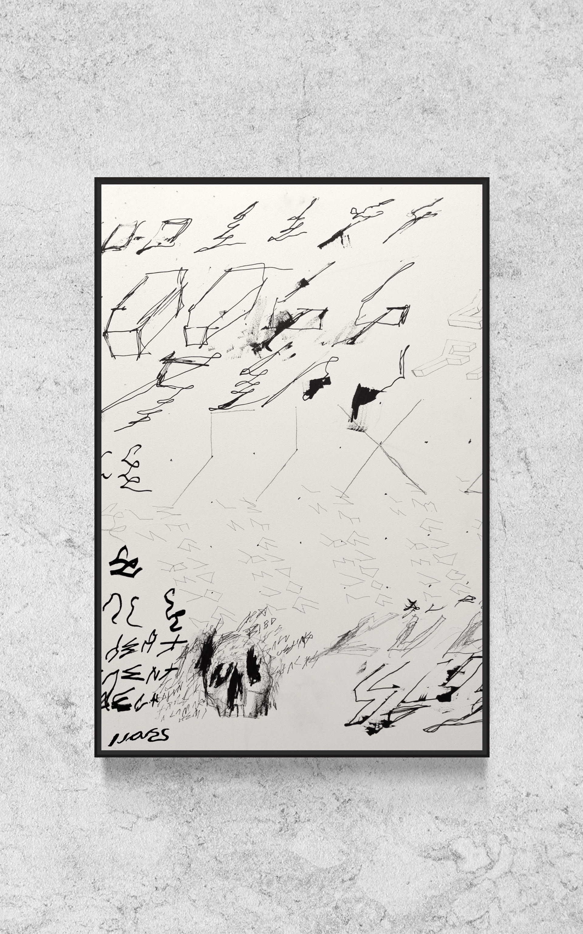 Ink, acrylic, marker and pencil on painted 5mm wood fibre board