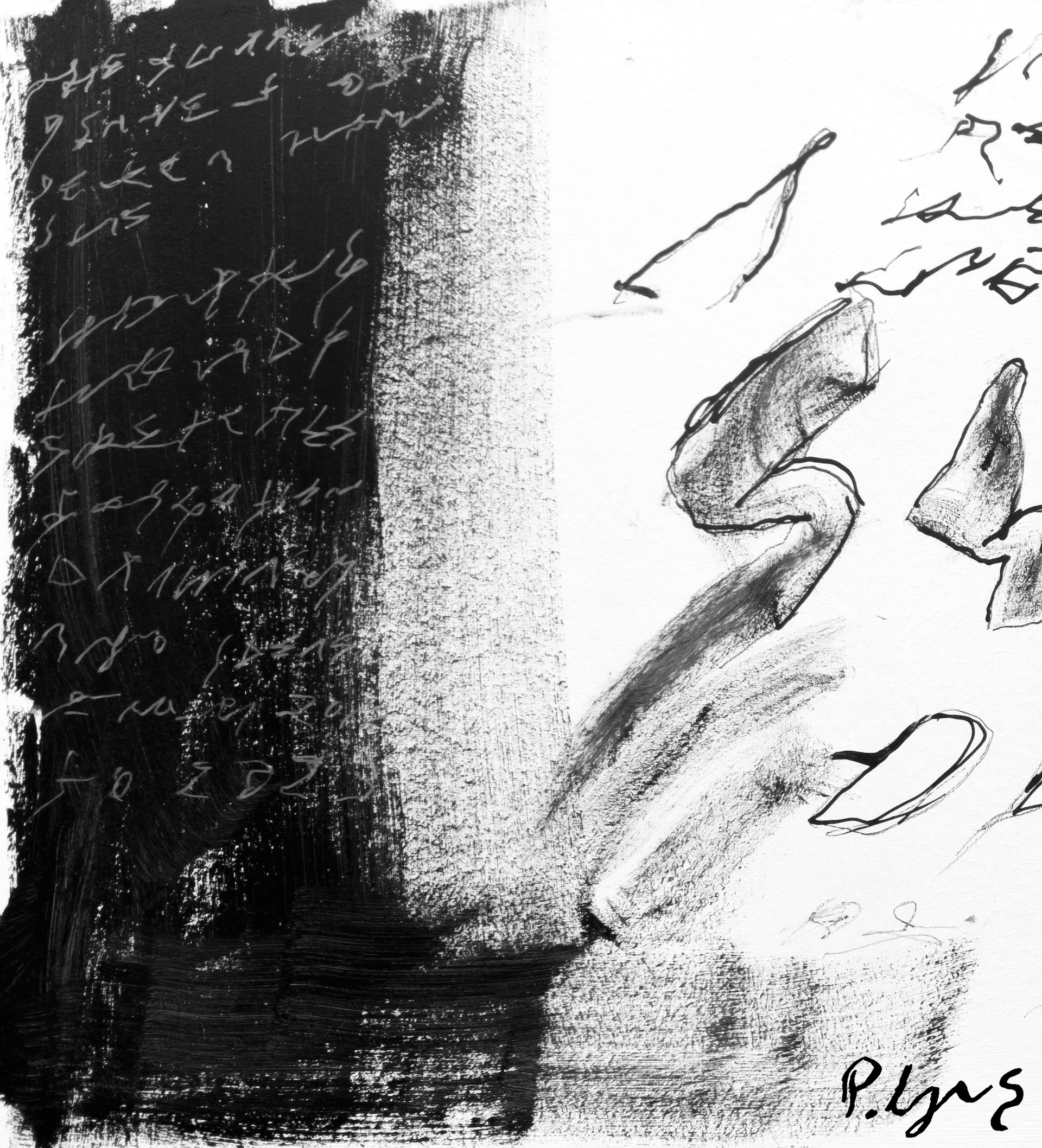 Ink, acrylic, marker and pencil on painted 5mm wood fibre board